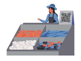 Petugas scan QR Code / QRIS yang ditempel pada Toko/Kios pedagang.