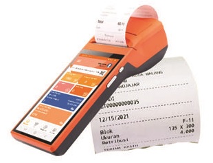 Petugas pemungut retribusi membawa m-POS ke lokasi pedagang.
